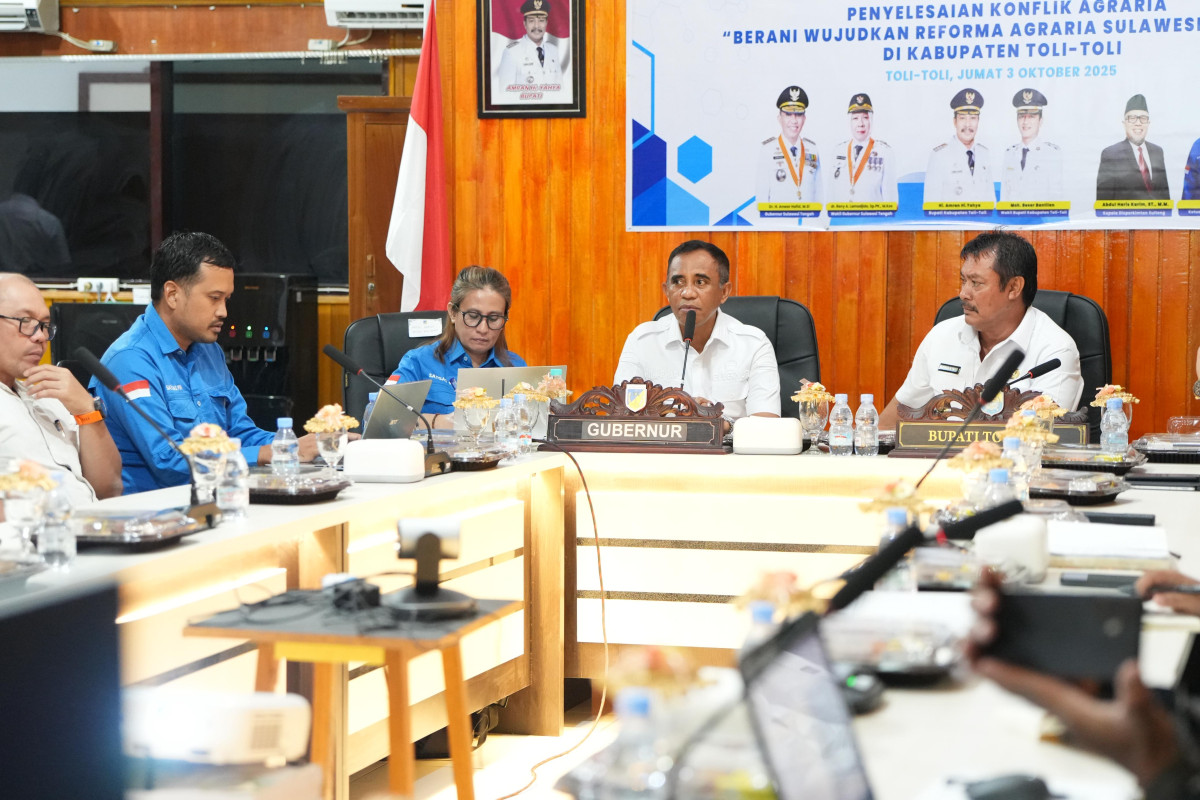 Pernyataan itu disampaikan langsung dalam rapat terbatas Satgas PKA di Kantor BPKAD Tolitoli, Jumat (3/10/2025). Rapat dipimpin Bupati Tolitoli Amran Hi Yahya dan Wakil Bupati Muhamad Besar Bantilan, dihadiri Gubernur Anwar, Forkopimda, Kepala BPN Sulteng, serta puluhan kepala desa yang tanahnya jadi rebutan.