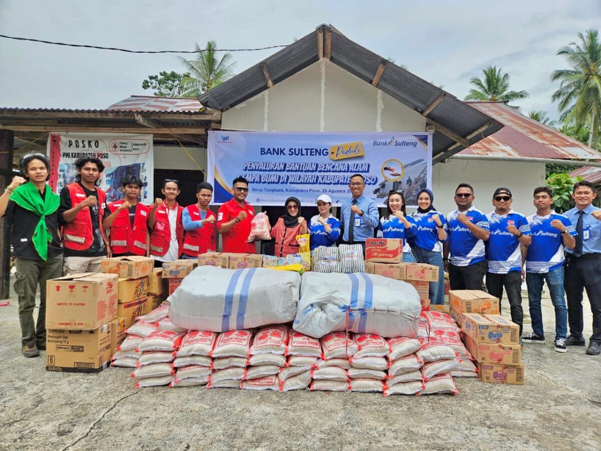 Melalui program Bank Sulteng Peduli, bank ini menyerahkan bantuan berupa sembako, selimut, handuk, dan kebutuhan pokok lainnya kepada warga di Desa Tangkura, Kabupaten Poso, pada 26 Agustus 2025. Penyaluran bantuan dilakukan bekerja sama dengan Palang Merah Indonesia (PMI) Kabupaten Poso untuk memastikan distribusi tepat sasaran.