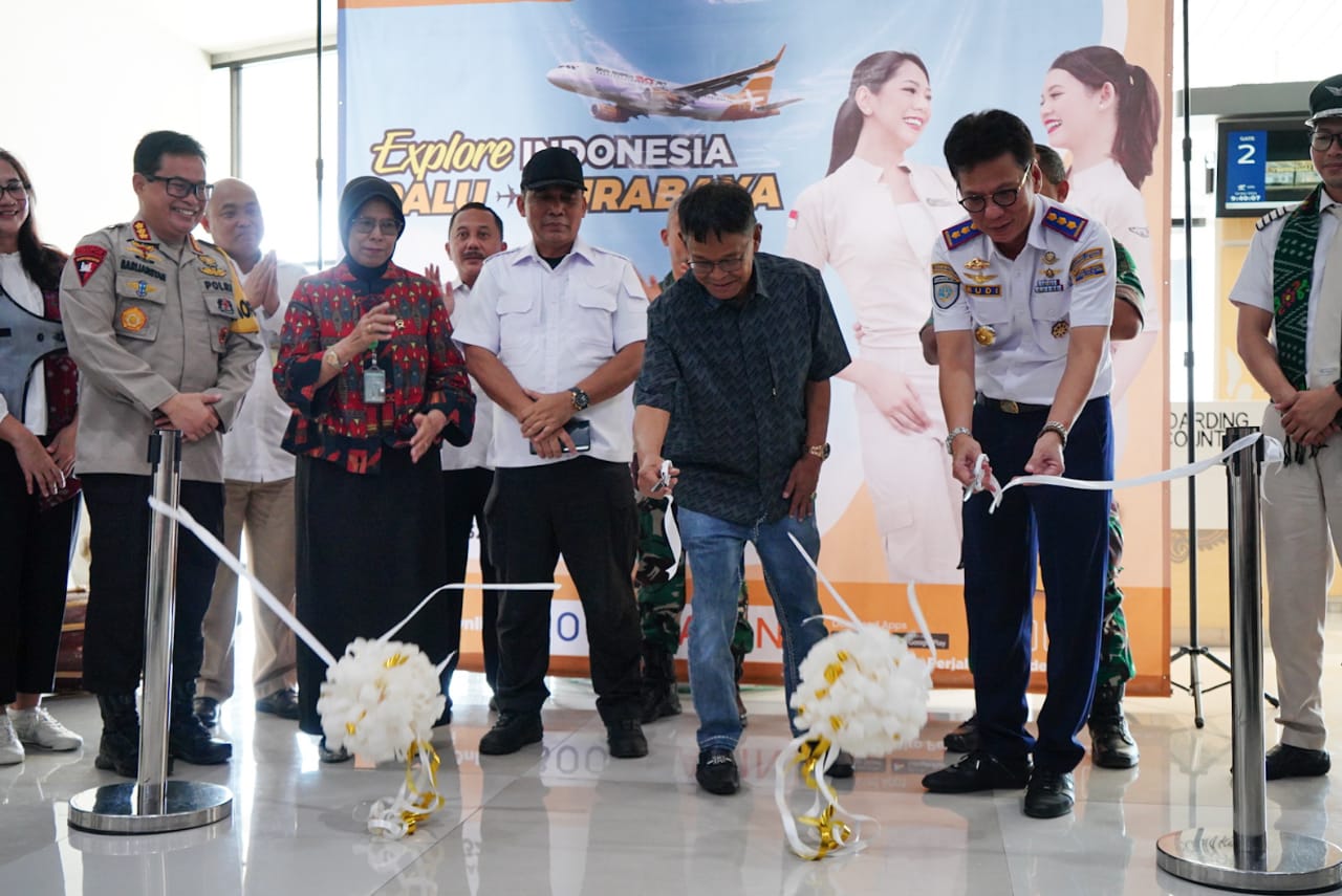 Diksi.net, Palu – Gubernur Sulawesi Tengah, Rusdy Mastura, meresmikan penerbangan perdana Pesawat Super Air Jet dengan rute Palu-Surabaya di Bandara Sis Aljufri, Palu, pada Jumat (19/7/2024).