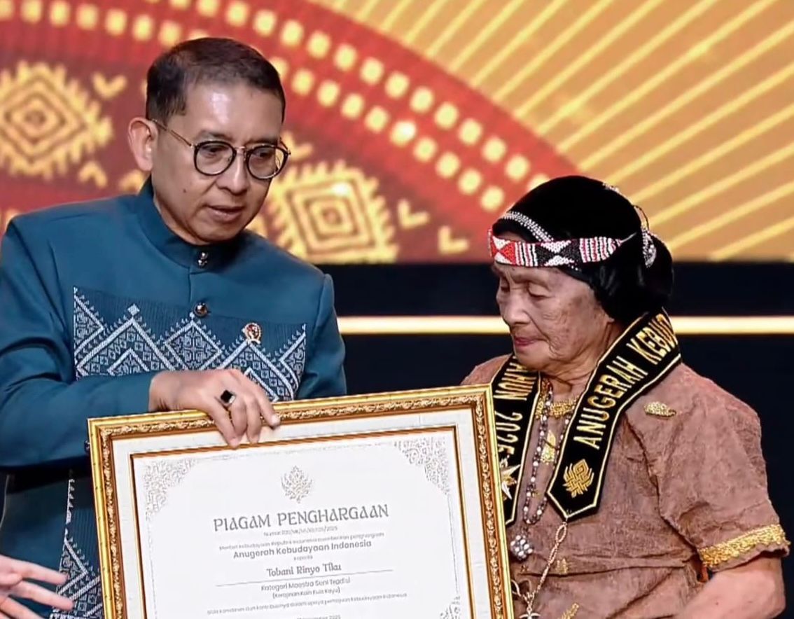 Diksi.net, Jakarta – Anugerah Kebudayaan Indonesia (AKI) 2025 resmi menganugerahkan gelar Maestro Seni Tradisi kepada Ina Tobani, seorang ibu rumah tangga berusia 84 tahun yang konsisten menjaga dan mewariskan tradisi pembuatan kain kulit kayu, warisan budaya yang telah bertahan selama sekitar 4.000 tahun.