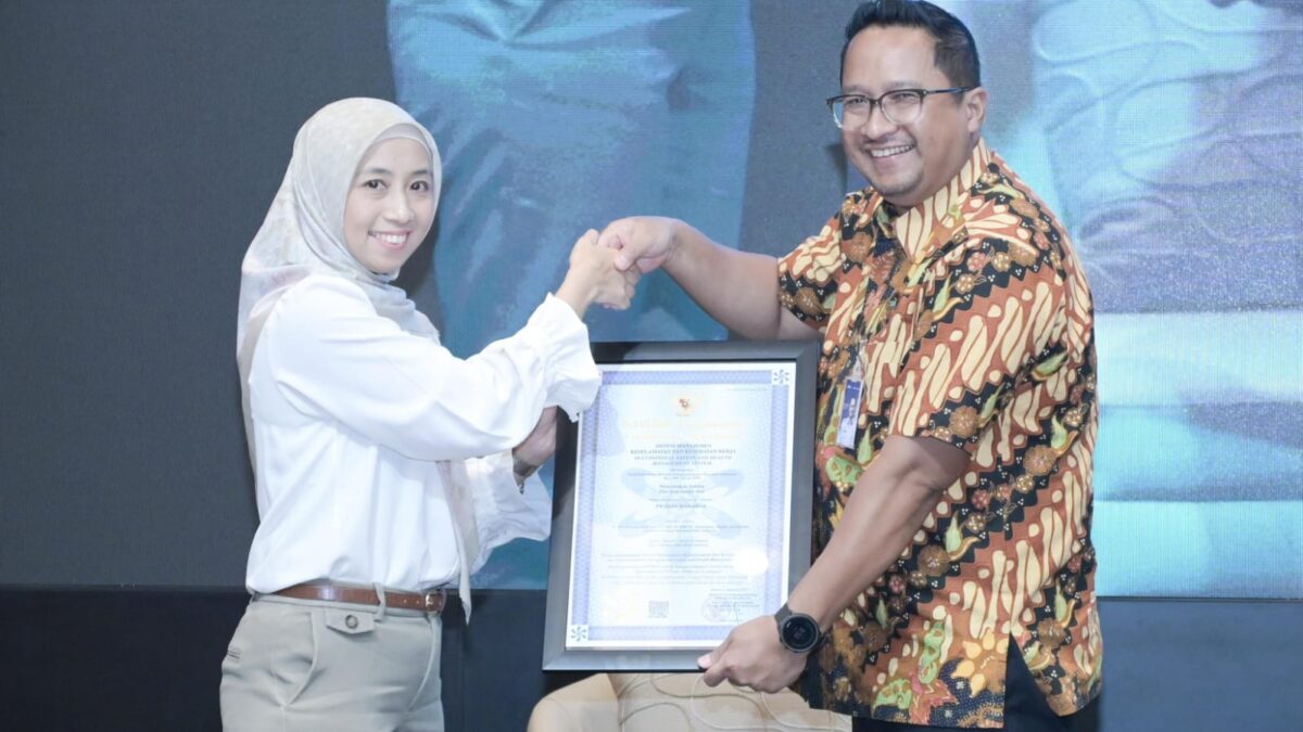 Sertifikat diserahkan langsung oleh Kepala Seksi Bidang Kelembagaan, Keahlian, dan SMK3 Direktorat Jenderal Pengawasan Norma Keselamatan dan Kesehatan Kerja (Ditjen PNK3) Kemnaker RI, dr. Nila Pratiwi Ichsan, kepada Direktur Kepatuhan dan Manajemen Risiko Jasa Raharja, Harwan Muldidarmawan, dalam seminar Health and Safety Environment for the Great Place to Work di Ballroom Jasa Raharja Kantor Pusat, Selasa (26/11/2024).