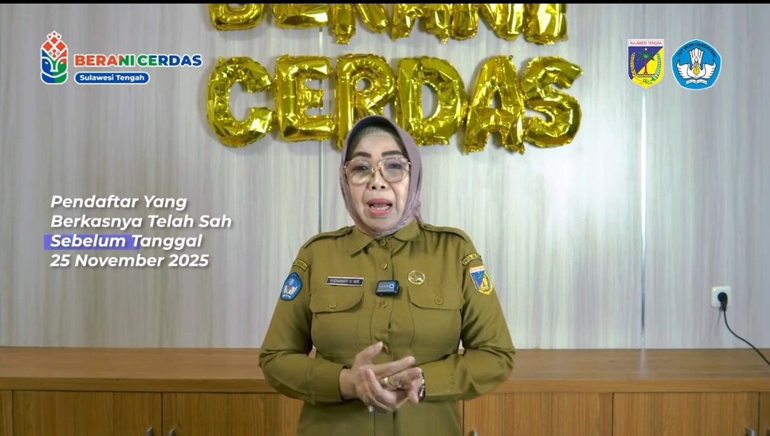 Diksi.net, Palu – Kepala Dinas Pendidikan Provinsi Sulawesi Tengah Yudiawati V. Windarrusliana mengimbau seluruh calon penerima Beasiswa Berani Cerdas Tahun 2025 untuk segera melengkapi dan memperbaiki seluruh dokumen persyaratan sebelum 25 November 2025. Batas waktu tersebut menjadi penentu bagi usulan beasiswa yang akan diproses untuk pembayaran pada semester ganjil.