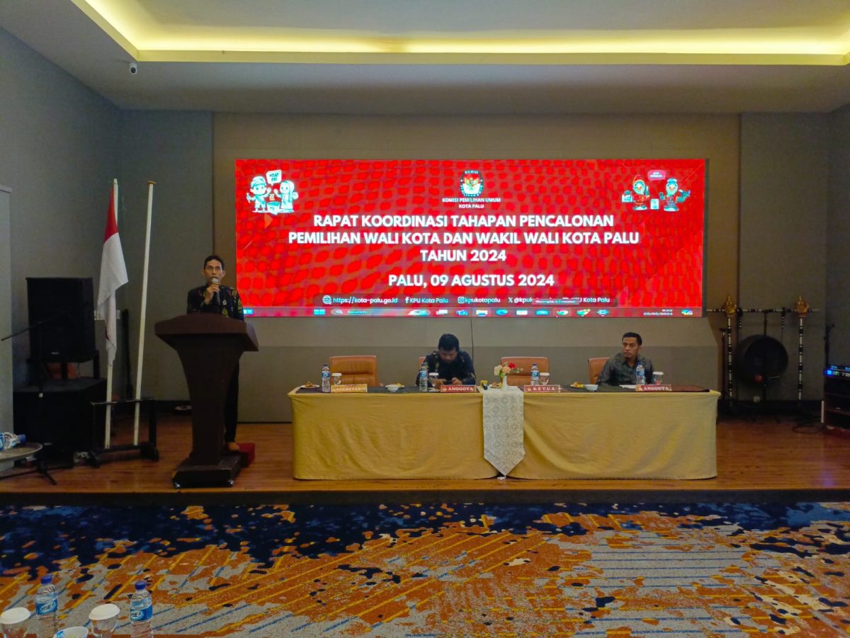 Diksi.net, Palu – Komisi Pemilihan Umum (KPU) Kota Palu menyelenggarakan rapat koordinasi membahas tahapan pencalonan Wali Kota dan Wakil Wali Kota Palu untuk Pemilihan Kepala Daerah (Pilkada) tahun 2024.