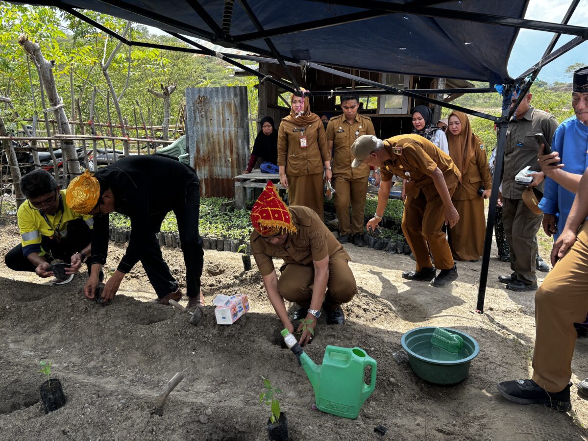 Gubernur Sulteng, dan Kepala Teknik Tambang PT CPM lakukan penanaman bibit secara simbolis. (foto : Andi).
