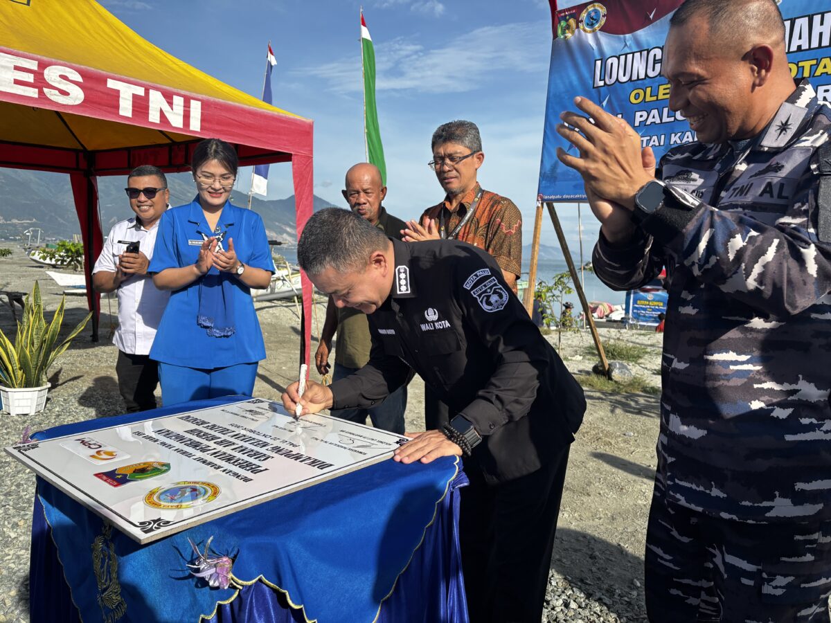 Diksi.net, Palu – Pemerintahlah Kota Palu bersama dengan Lanal Palu dan PT Citra Palu Minerals meluncurkan dan menyerahkan rumah rumpon untuk kelompok nelayan di wilayah pantai Talise. Program tersebut merupakan kolaborasi antara Pangkalan TNI AL Palu dan PT CPM, sebagai perhatian dan upaya untuk peningkatan kesejahteraan nelayan di wilayah pesisir Teluk Palu.