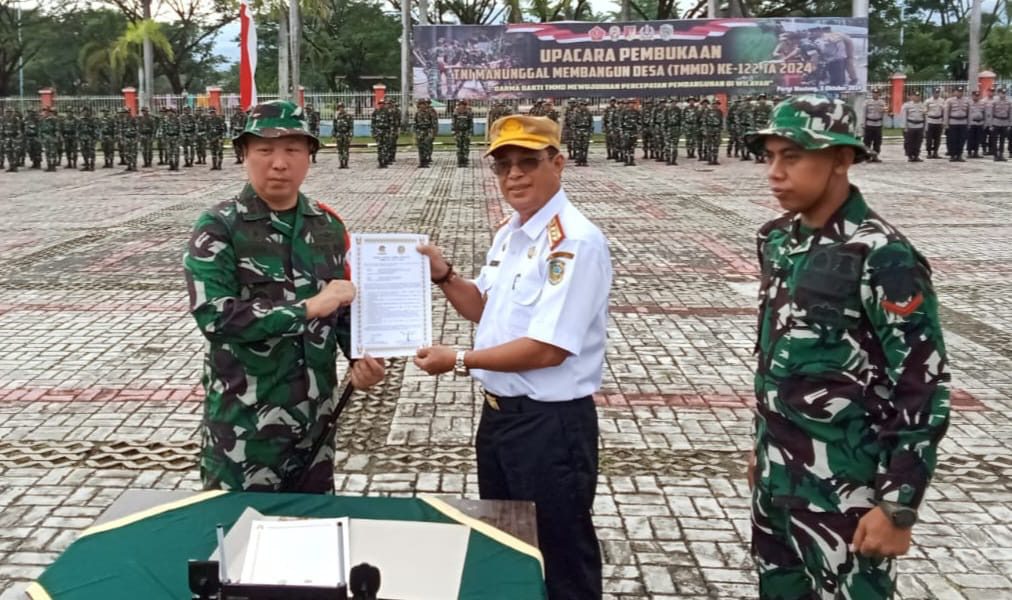 Diksi.net, Parigi Moutong – Program TNI Manunggal Membangun Desa (TMMD) 2024 resmi digelar di Parigi Moutong. Upacara pembukaannya dihadiri langsung oleh Komandan Korem 132/Tadulako, Brigjen TNI Deni Gunawan S.E dan Komandan Kodim 1306/Kota Palu, Letkol Inf Rivan Rambudito Rivai.