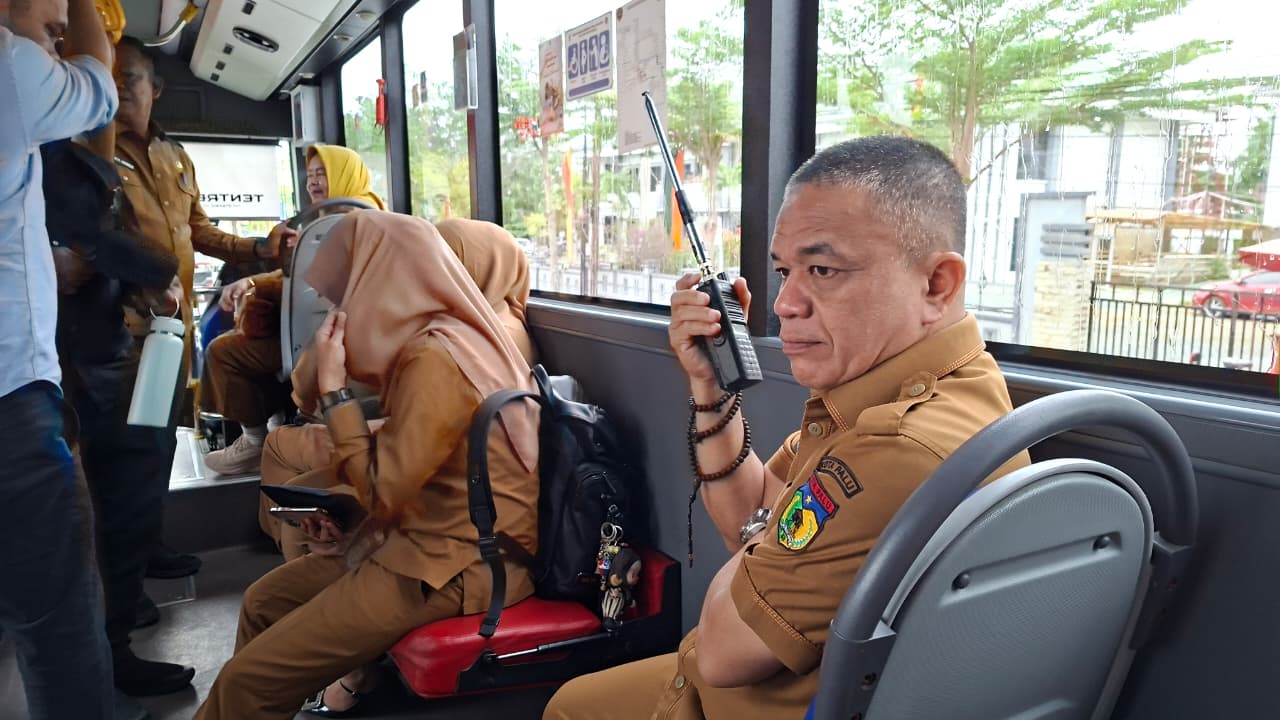 Wali Kota Palu, Hadianto Rasyid, saat melakukan peninjauan kebersihan menggunakan Bus Trans Palu. (Foto : Jufri).