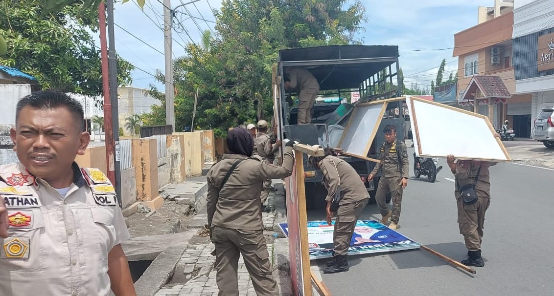 Satpol PP dan Bawaslu Kota Palu Lakukan Penertiban APS Berbentuk APK